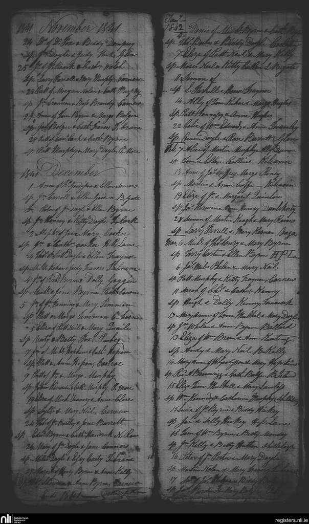 Tomacork; County of Wexford, Wicklow; Diocese of Ferns. Baptisms, Nov. 1841 to Mar. 1842