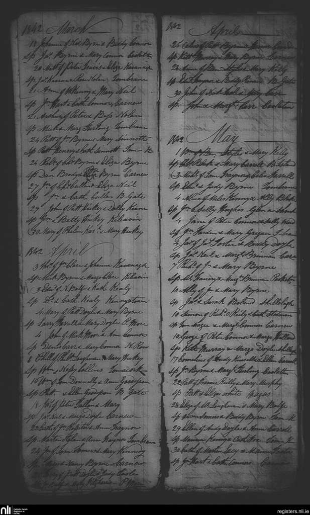 Tomacork; County of Wexford, Wicklow; Diocese of Ferns. Baptisms, Mar. 1842 to May 1842