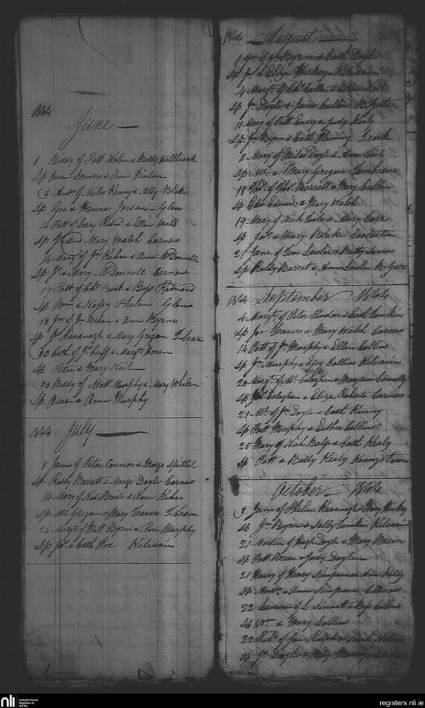 Tomacork; County of Wexford, Wicklow; Diocese of Ferns. Baptisms, June 1844 to Oct. 1844