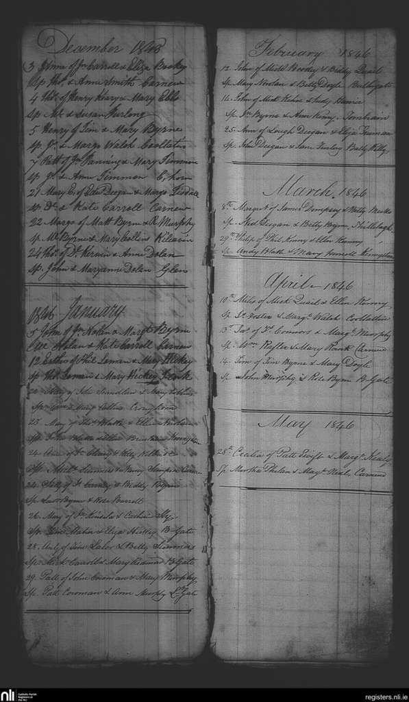 Tomacork; County of Wexford, Wicklow; Diocese of Ferns. Baptisms, Dec. 1845 to May 1846