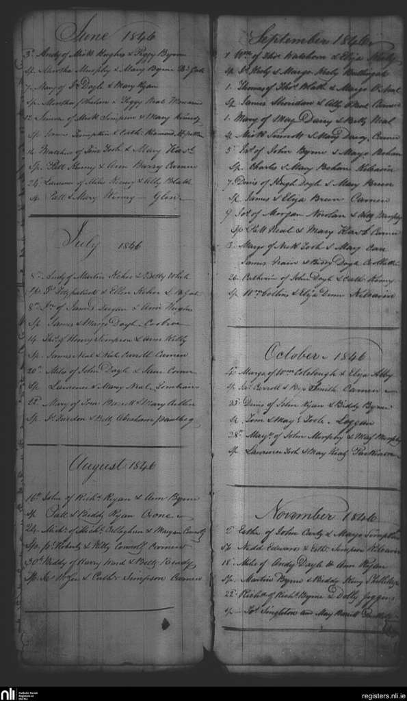 Tomacork; County of Wexford, Wicklow; Diocese of Ferns. Baptisms, June 1846 to Nov. 1846