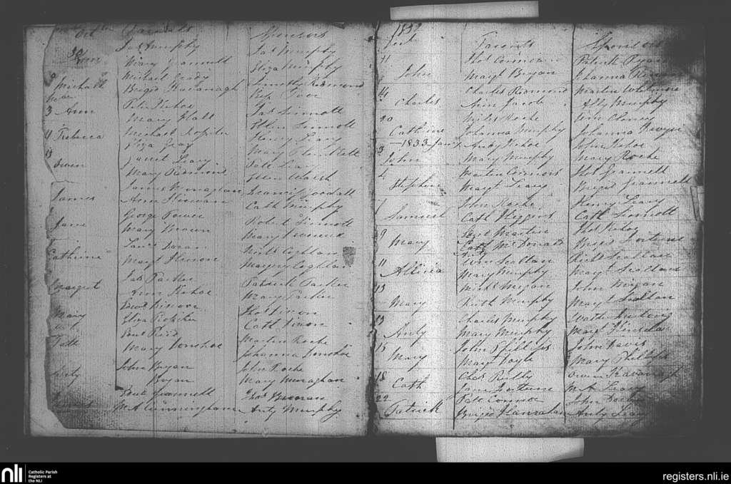 Castlebridge; County of Wexford; Diocese of Ferns. Baptisms, Oct. 1832 to Jan. 1833