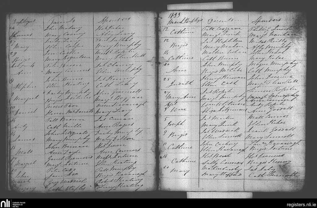 Castlebridge; County of Wexford; Diocese of Ferns. Baptisms, Jan. 1833 to Apr. 1833