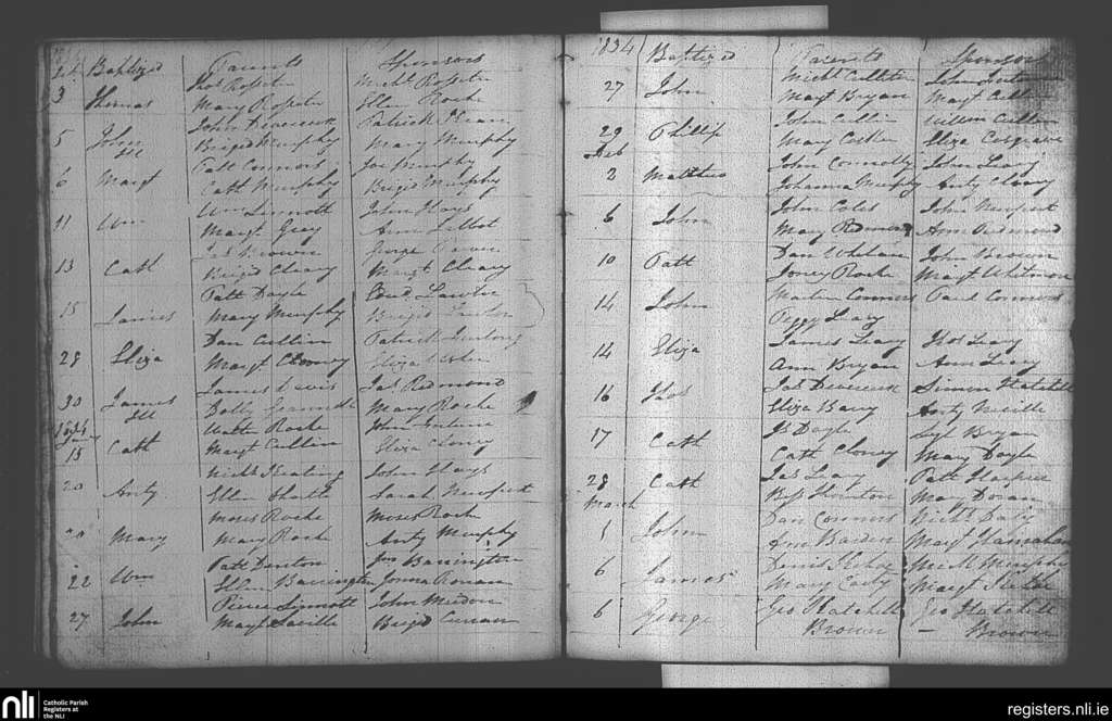 Castlebridge; County of Wexford; Diocese of Ferns. Baptisms, Dec. 1833 to Mar. 1834