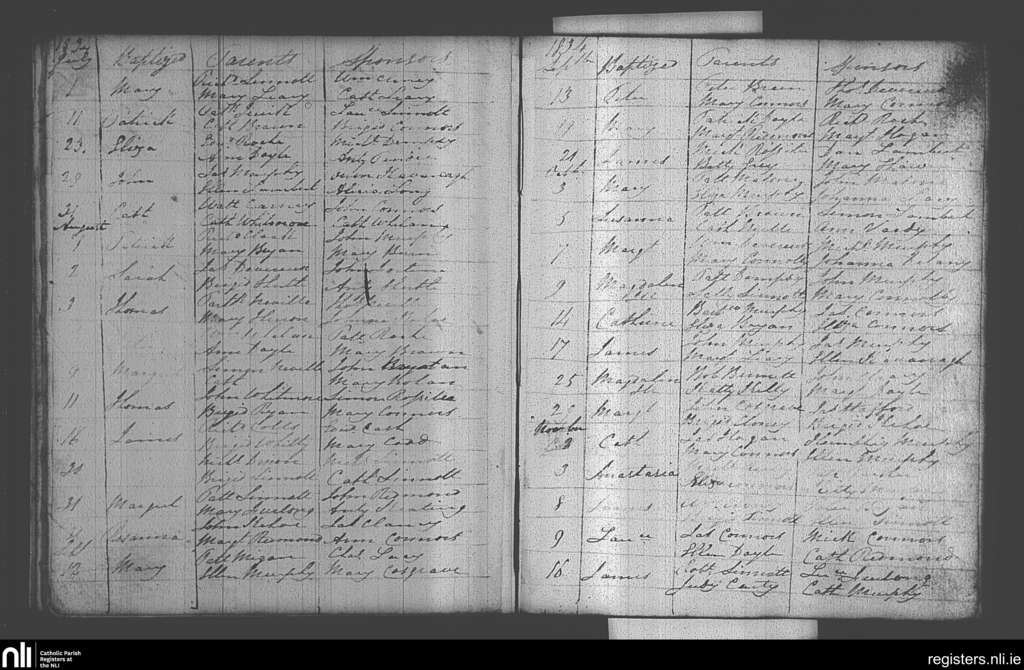 Castlebridge; County of Wexford; Diocese of Ferns. Baptisms, July 1834 to Nov. 1834