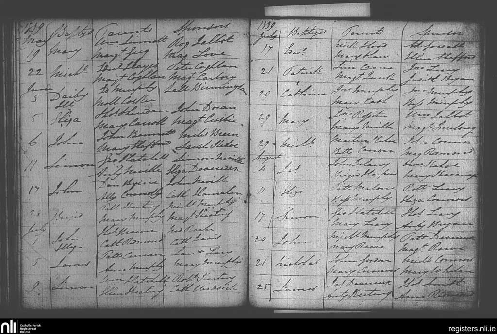 Castlebridge; County of Wexford; Diocese of Ferns. Baptisms, May 1839 to Aug. 1839