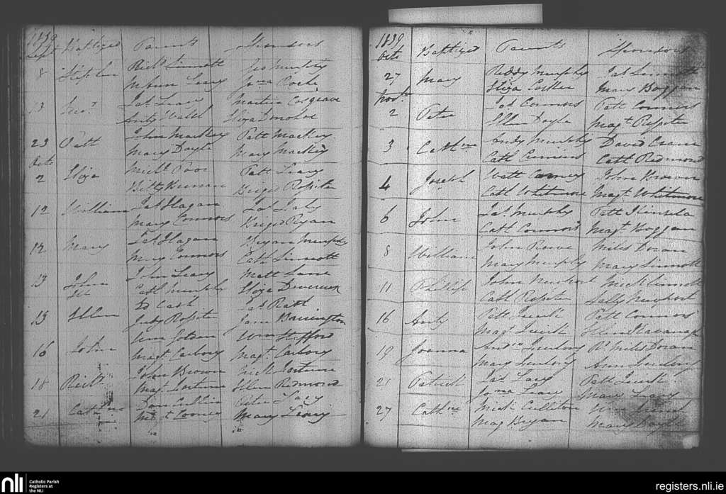 Castlebridge; County of Wexford; Diocese of Ferns. Baptisms, Sep. 1839 to Nov. 1839