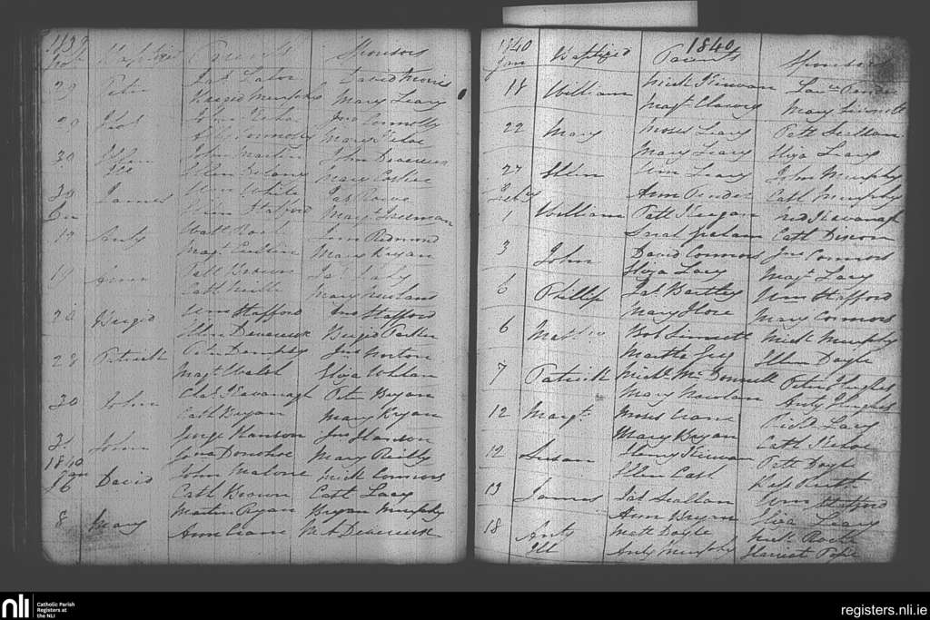 Castlebridge; County of Wexford; Diocese of Ferns. Baptisms, Nov. 1839 to Feb. 1840