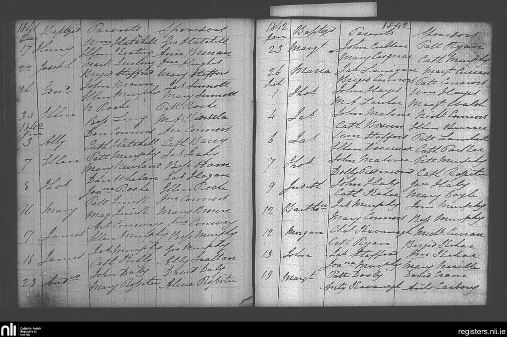 Castlebridge; County of Wexford; Diocese of Ferns. Baptisms, Dec. 1841 to Feb. 1842