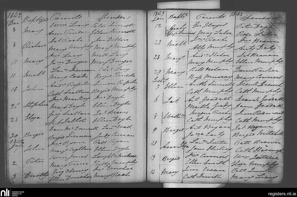 Castlebridge; County of Wexford; Diocese of Ferns. Baptisms, Dec. 1842 to Feb. 1843