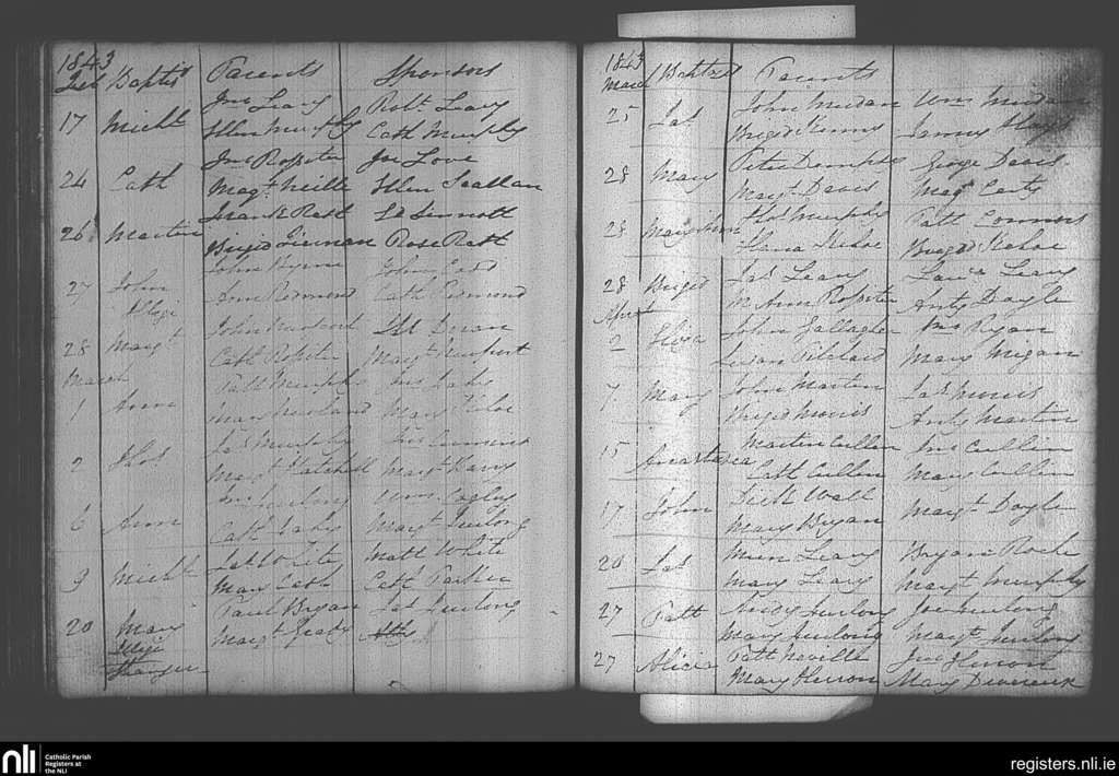 Castlebridge; County of Wexford; Diocese of Ferns. Baptisms, Feb. 1843 to Apr. 1843
