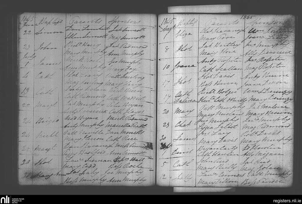Castlebridge; County of Wexford; Diocese of Ferns. Baptisms, June 1845 to Sep. 1845