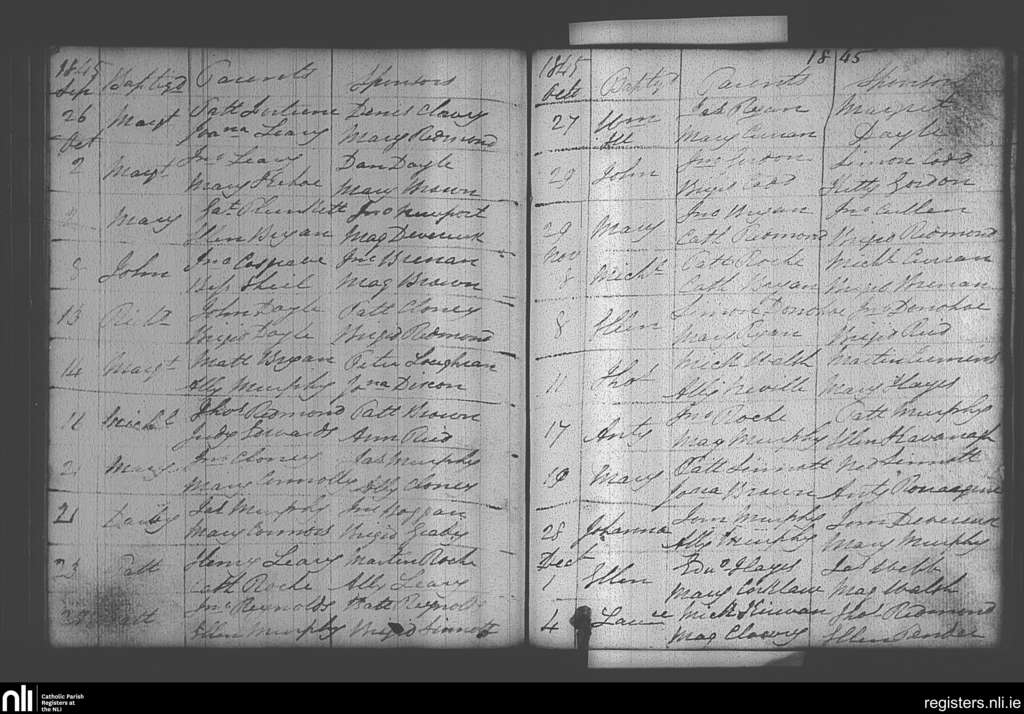 Castlebridge; County of Wexford; Diocese of Ferns. Baptisms, Sep. 1845 to Dec. 1845