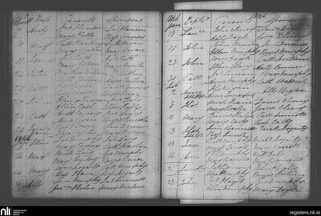 Castlebridge; County of Wexford; Diocese of Ferns. Baptisms, Dec. 1845 to Feb. 1846
