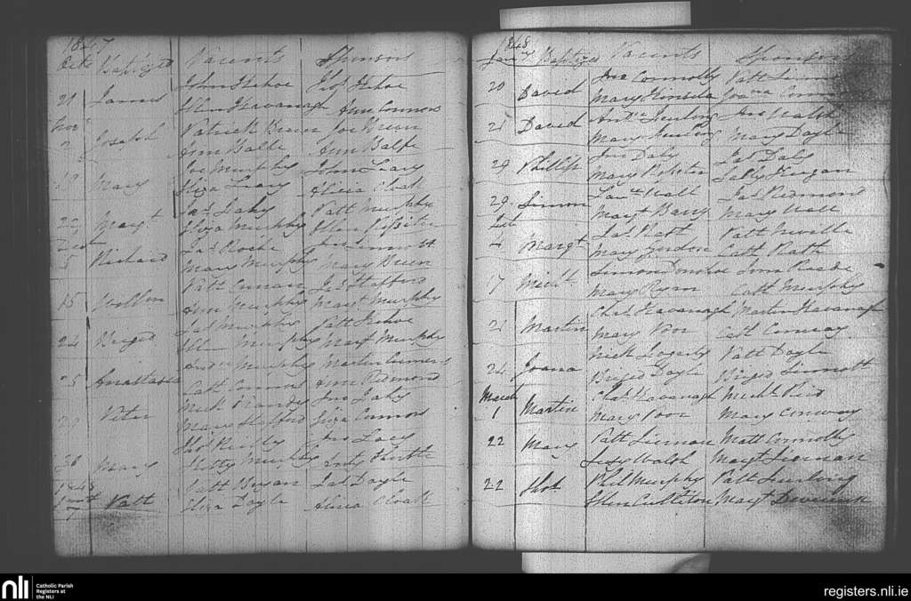 Castlebridge; County of Wexford; Diocese of Ferns. Baptisms, Oct. 1847 to Mar. 1848