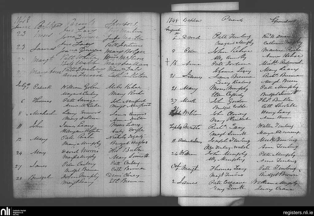 Castlebridge; County of Wexford; Diocese of Ferns. Baptisms, June 1848 to Oct. 1848