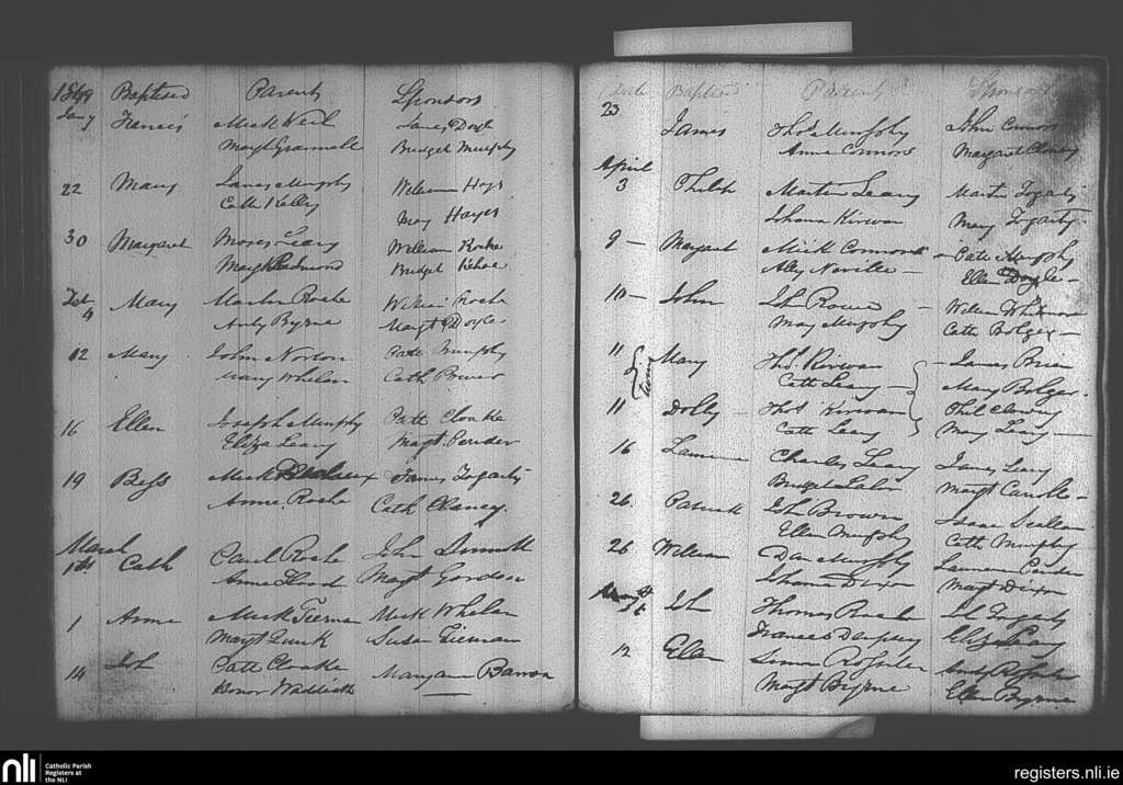 Castlebridge; County of Wexford; Diocese of Ferns. Baptisms, Jan. 1849 to May 1849