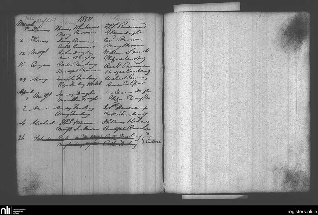 Castlebridge; County of Wexford; Diocese of Ferns. Baptisms, Mar. 1850 to Apr. 1850