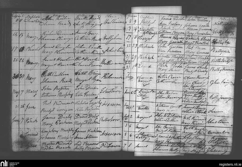 Castlebridge; County of Wexford; Diocese of Ferns. Baptisms, Apr. 1855 to July 1855