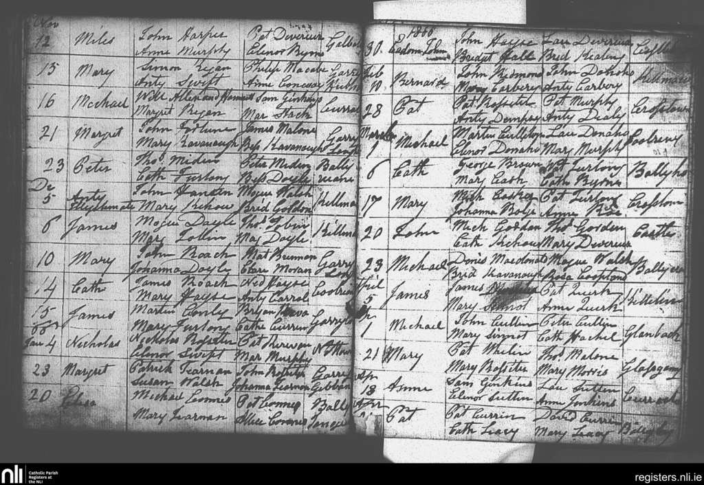 Castlebridge; County of Wexford; Diocese of Ferns. Baptisms, Nov. 1865 to Apr. 1866