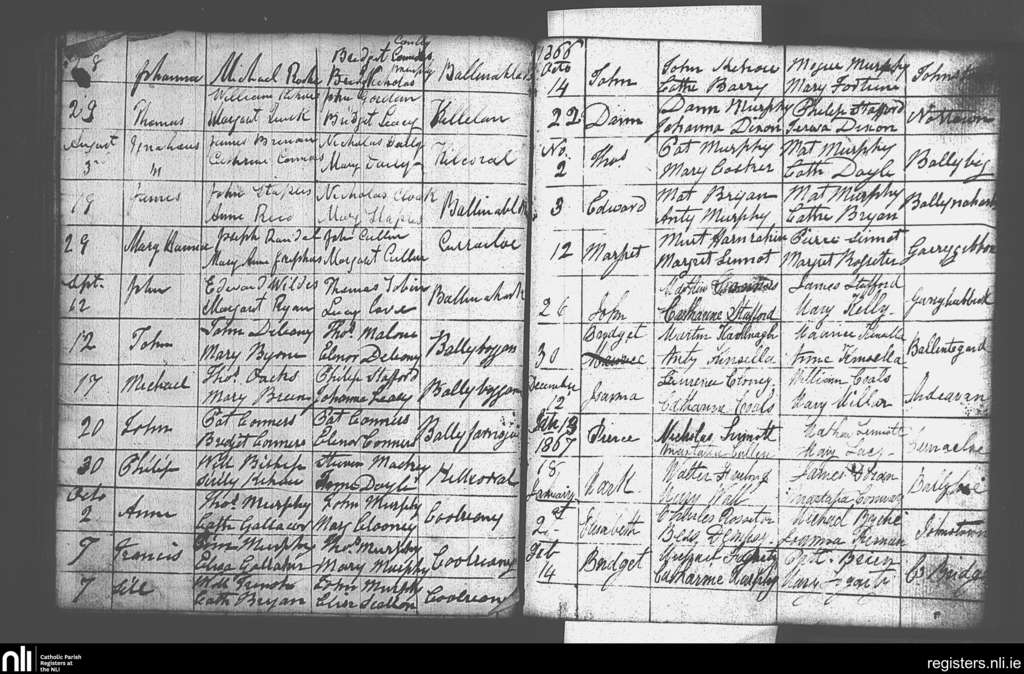 Castlebridge; County of Wexford; Diocese of Ferns. Baptisms, July 1866 to Feb. 1867