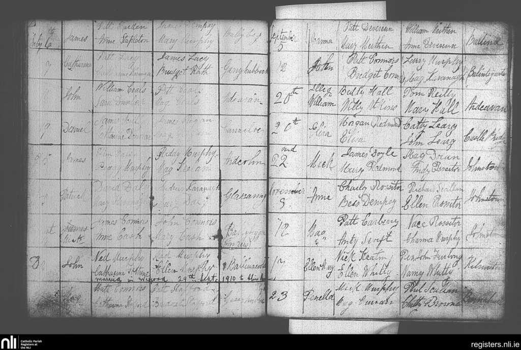 Castlebridge; County of Wexford; Diocese of Ferns. Baptisms, July 1869 to Nov. 1869
