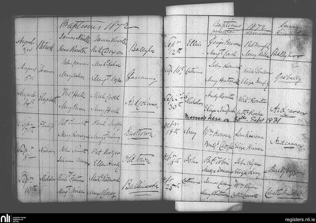 Castlebridge; County of Wexford; Diocese of Ferns. Baptisms, Aug. 1872 to Oct. 1872