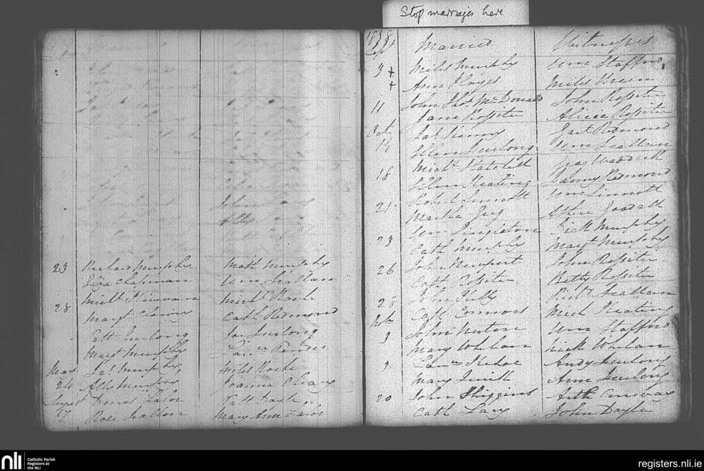 Castlebridge; County of Wexford; Diocese of Ferns. Marriages, May 1838 to Nov. 1838