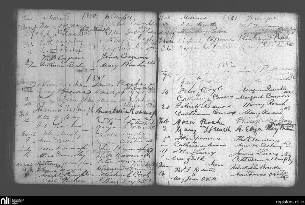 Castlebridge; County of Wexford; Diocese of Ferns. Marriages, Aug. 1880 to June 1882
