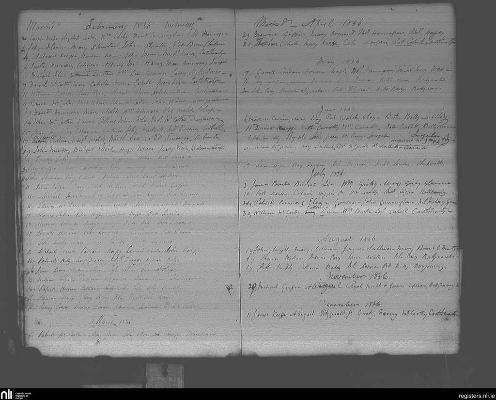 Imogeela; County of Cork; Diocese of Cloyne. Marriages, Feb. 1836 to Dec. 1836