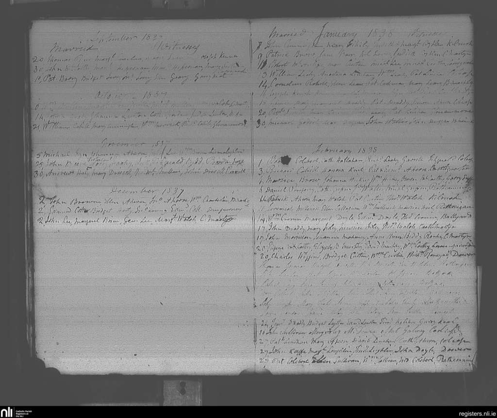 Imogeela; County of Cork; Diocese of Cloyne. Marriages, Sep. 1837 to Feb. 1838