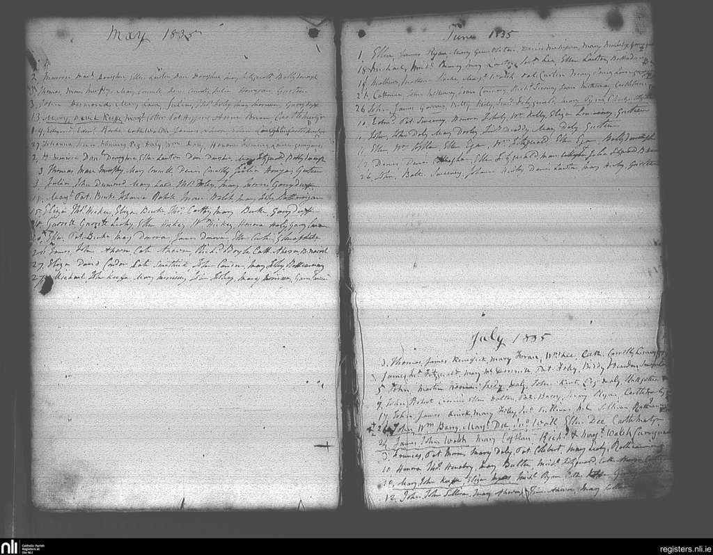 Imogeela; County of Cork; Diocese of Cloyne. Baptisms, May 1835 to July 1835