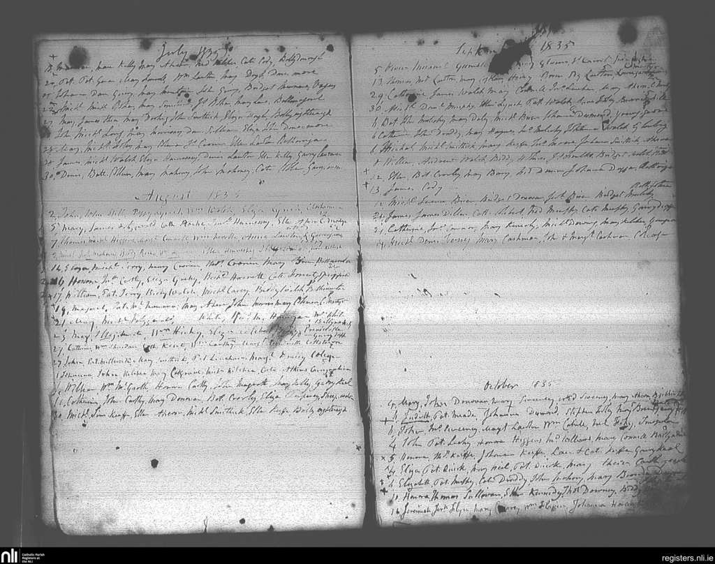Imogeela; County of Cork; Diocese of Cloyne. Baptisms, July 1835 to Oct. 1835