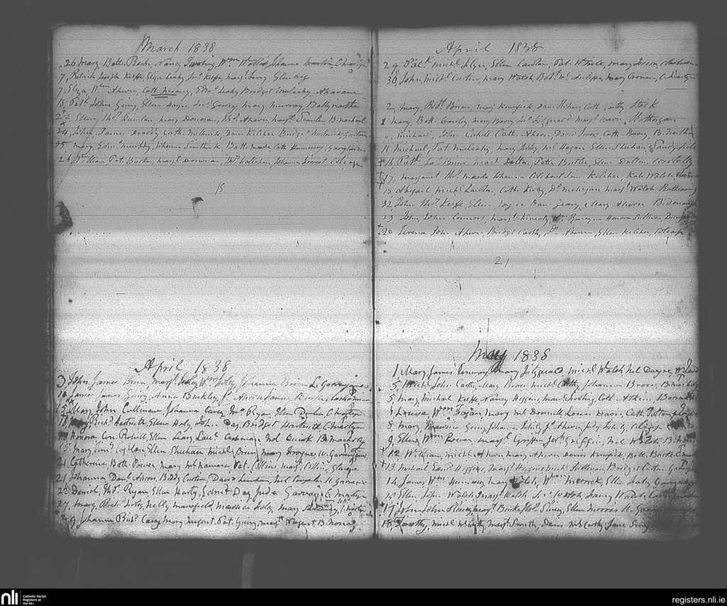 Imogeela; County of Cork; Diocese of Cloyne. Baptisms, Mar. 1838 to May 1838