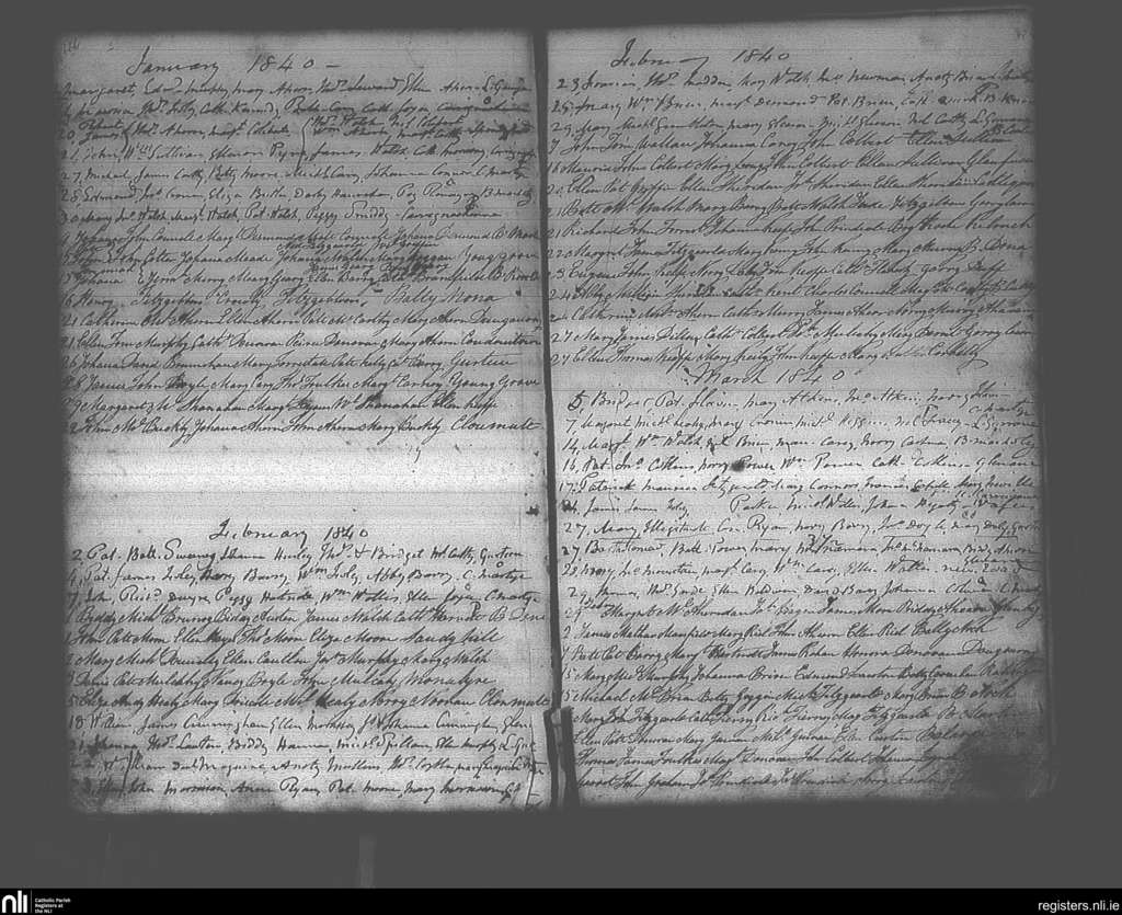 Imogeela; County of Cork; Diocese of Cloyne. Baptisms, Jan. 1840 to Mar. 1840