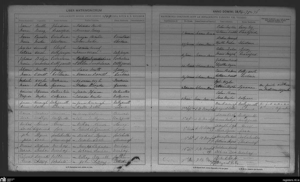Craanford; County of Wexford; Diocese of Ferns. Marriages, Jan. 1874 to Mar. 1876