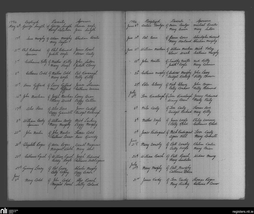 Enniscorthy; County of Wexford; Diocese of Ferns. Baptisms, May 1794 to July 1794