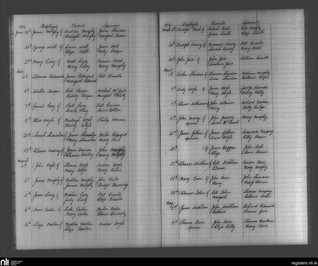 Enniscorthy; County of Wexford; Diocese of Ferns. Baptisms, Jan. 1804 to May 1804