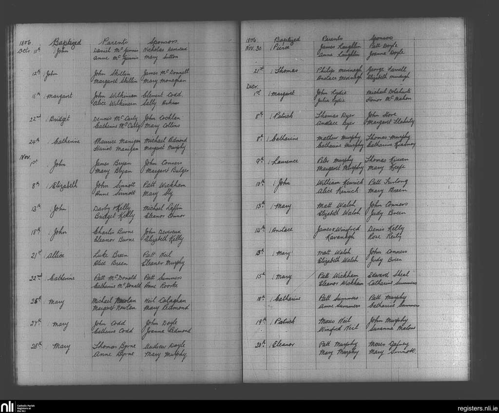 Enniscorthy; County of Wexford; Diocese of Ferns. Baptisms, Oct. 1806 to Dec. 1806