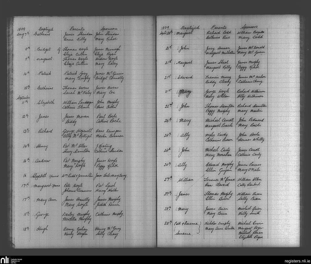Enniscorthy; County of Wexford; Diocese of Ferns. Baptisms, Aug. 1809 to Sep. 1809