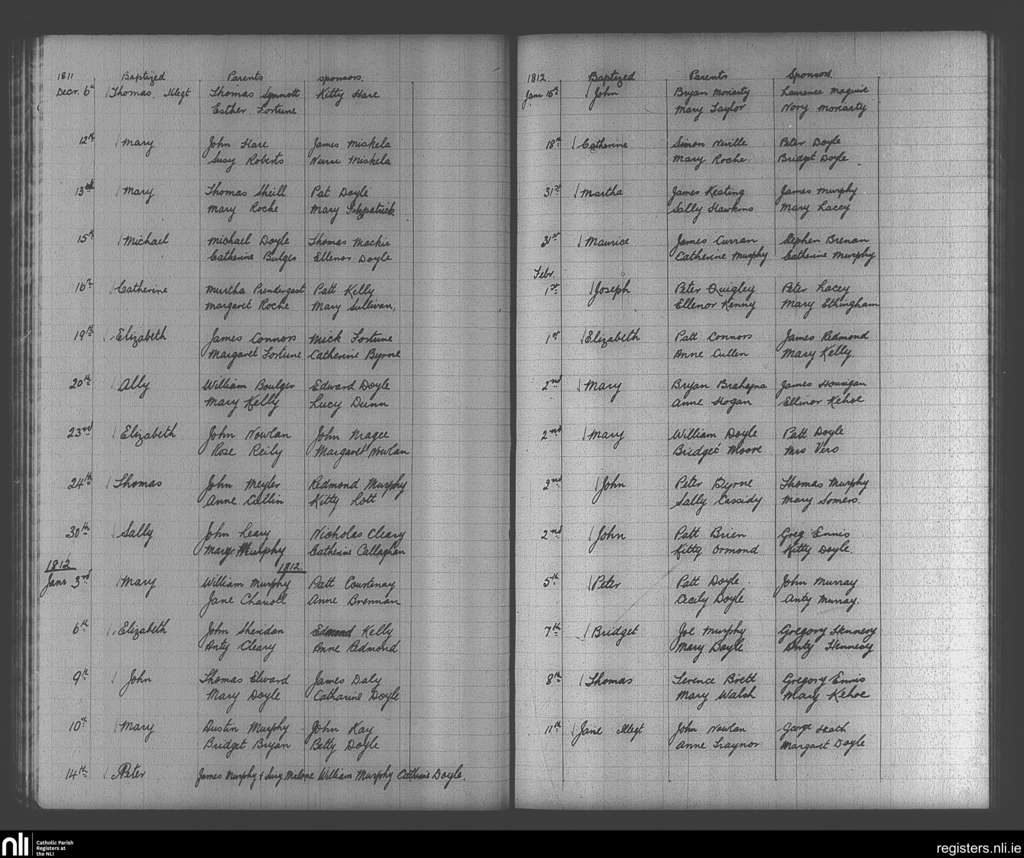 Enniscorthy; County of Wexford; Diocese of Ferns. Baptisms, Dec. 1811 to Feb. 1812