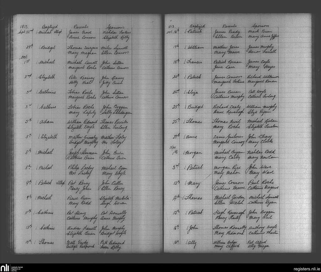Enniscorthy; County of Wexford; Diocese of Ferns. Baptisms, Sep. 1813 to Nov. 1813