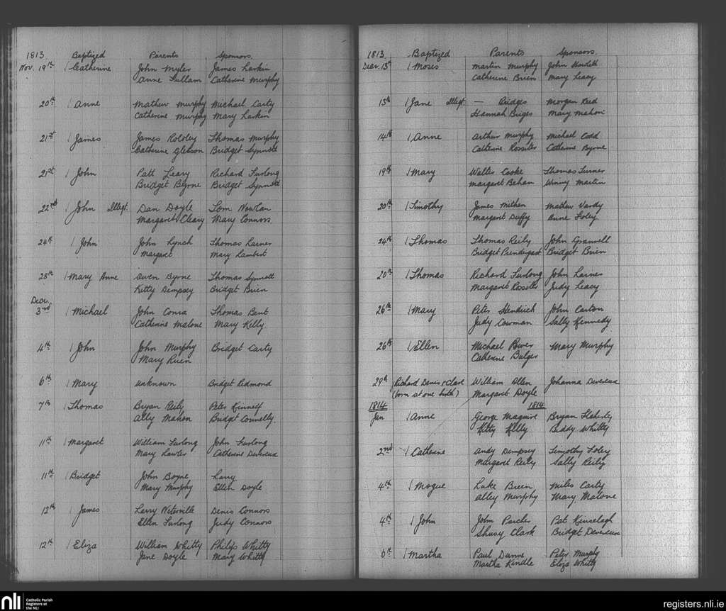 Enniscorthy; County of Wexford; Diocese of Ferns. Baptisms, Nov. 1813 to Jan. 1814