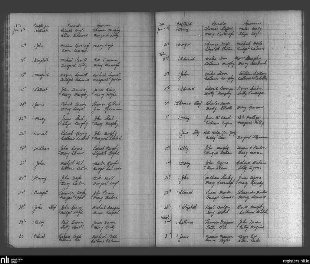 Enniscorthy; County of Wexford; Diocese of Ferns. Baptisms, Jan. 1814 to Mar. 1814