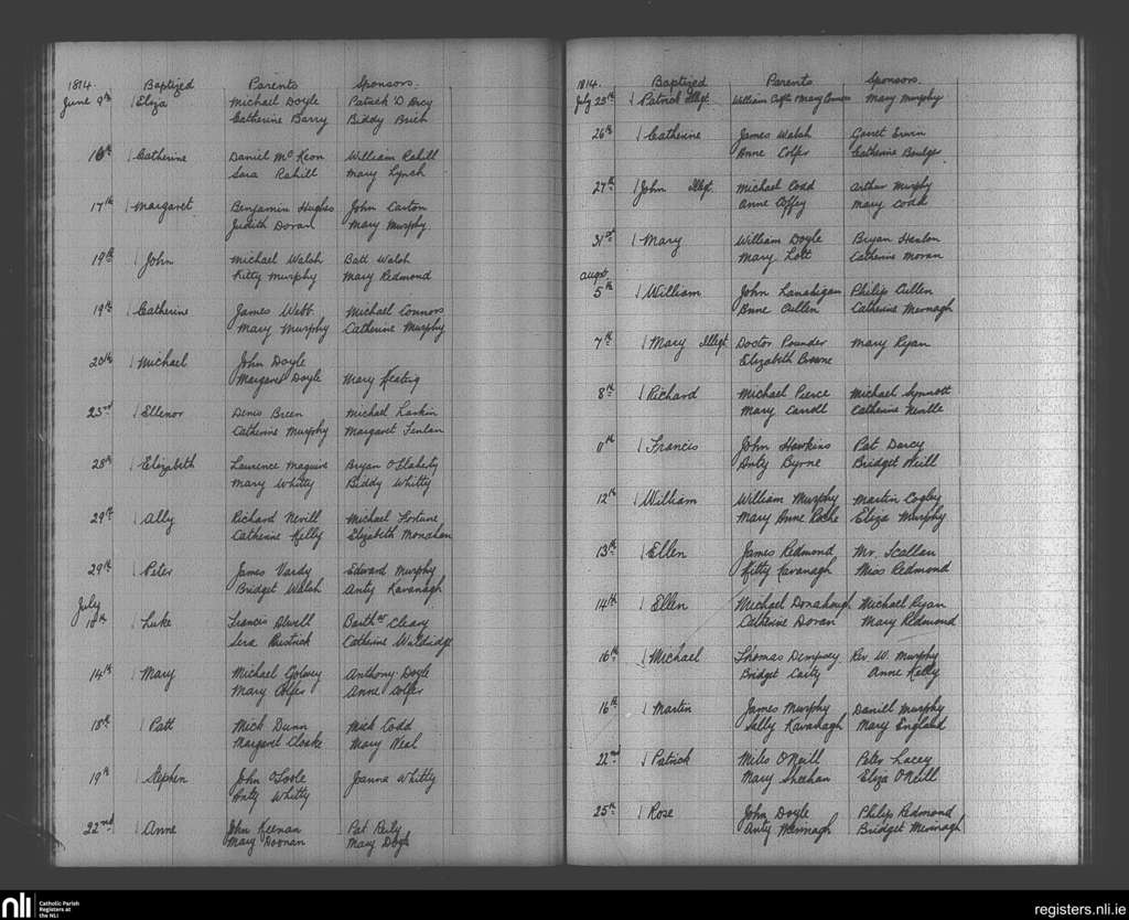 Enniscorthy; County of Wexford; Diocese of Ferns. Baptisms, June 1814 to Aug. 1814