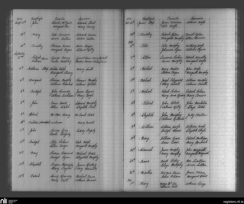 Enniscorthy; County of Wexford; Diocese of Ferns. Baptisms, Aug. 1814 to Nov. 1814