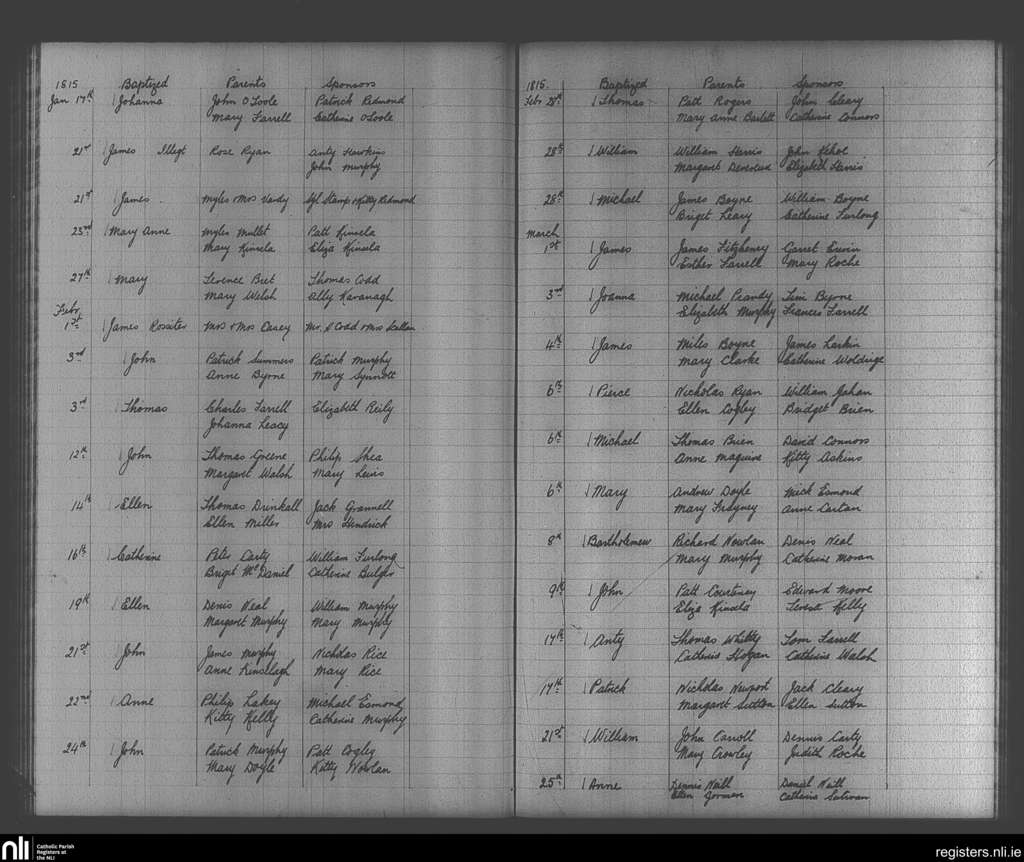 Enniscorthy; County of Wexford; Diocese of Ferns. Baptisms, Jan. 1815 to Mar. 1815