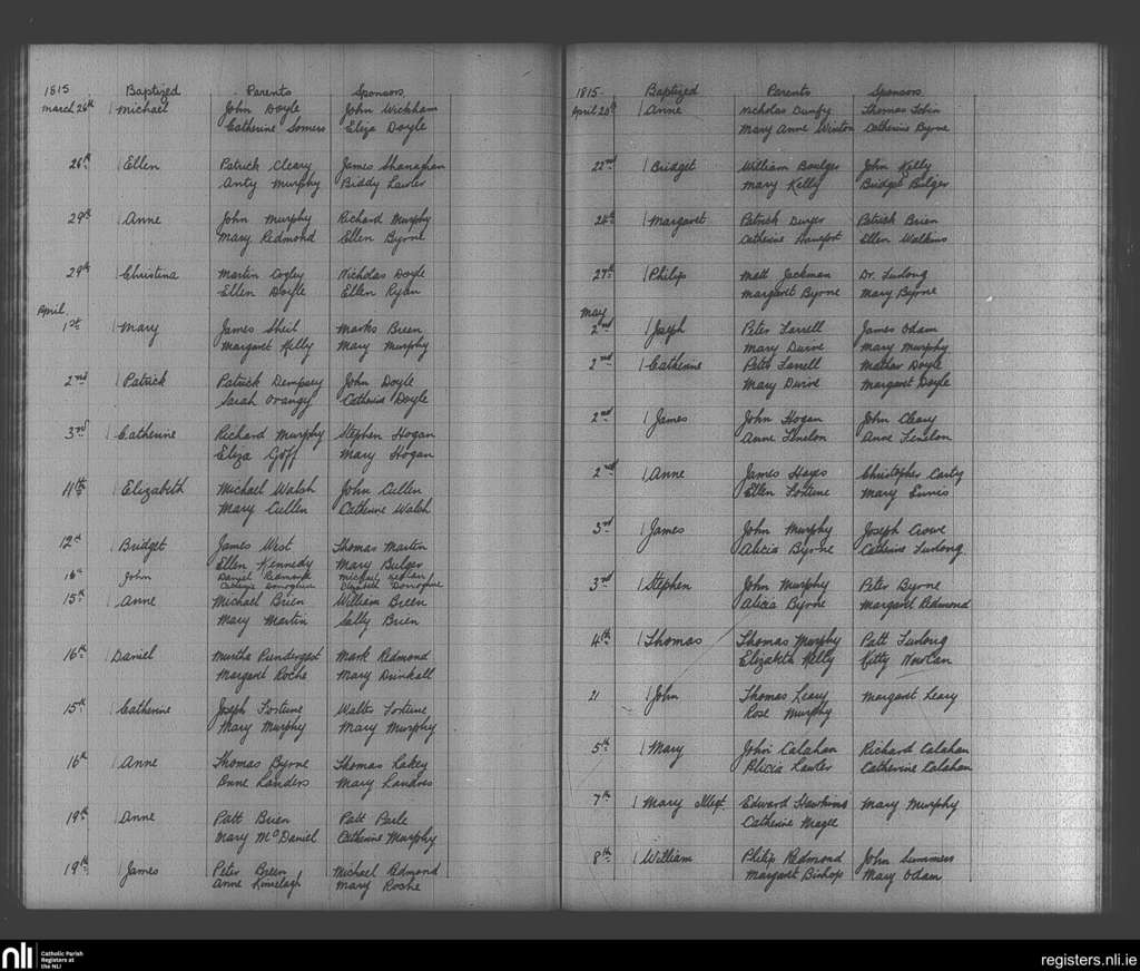 Enniscorthy; County of Wexford; Diocese of Ferns. Baptisms, Mar. 1815 to May 1815