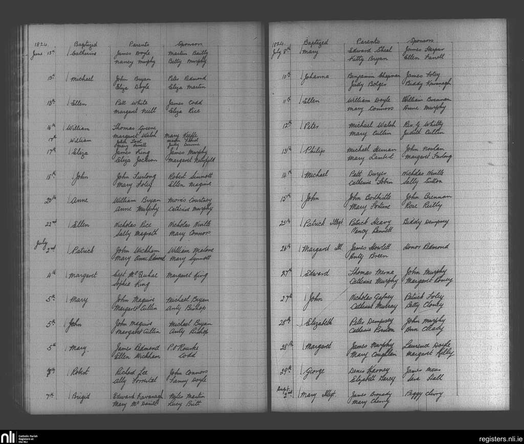 Enniscorthy; County of Wexford; Diocese of Ferns. Baptisms, June 1824 to Aug. 1824