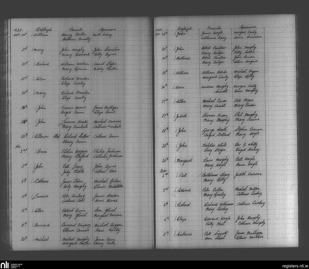 Enniscorthy; County of Wexford; Diocese of Ferns. Baptisms, Oct. 1824 to Dec. 1824